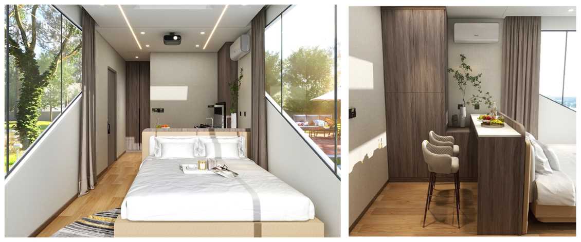 太空舱 H30 以 “未来科技美学与双人社交空间” 为设计灵感,将流线型未来感外观与温馨交互内核结合,用金属质感的凌厉线条勾勒科技轮廓,以柔和的内部光影营造亲密氛围,旨在打破传统住宿形态,为双人旅居场景注入前卫且温暖的体验。